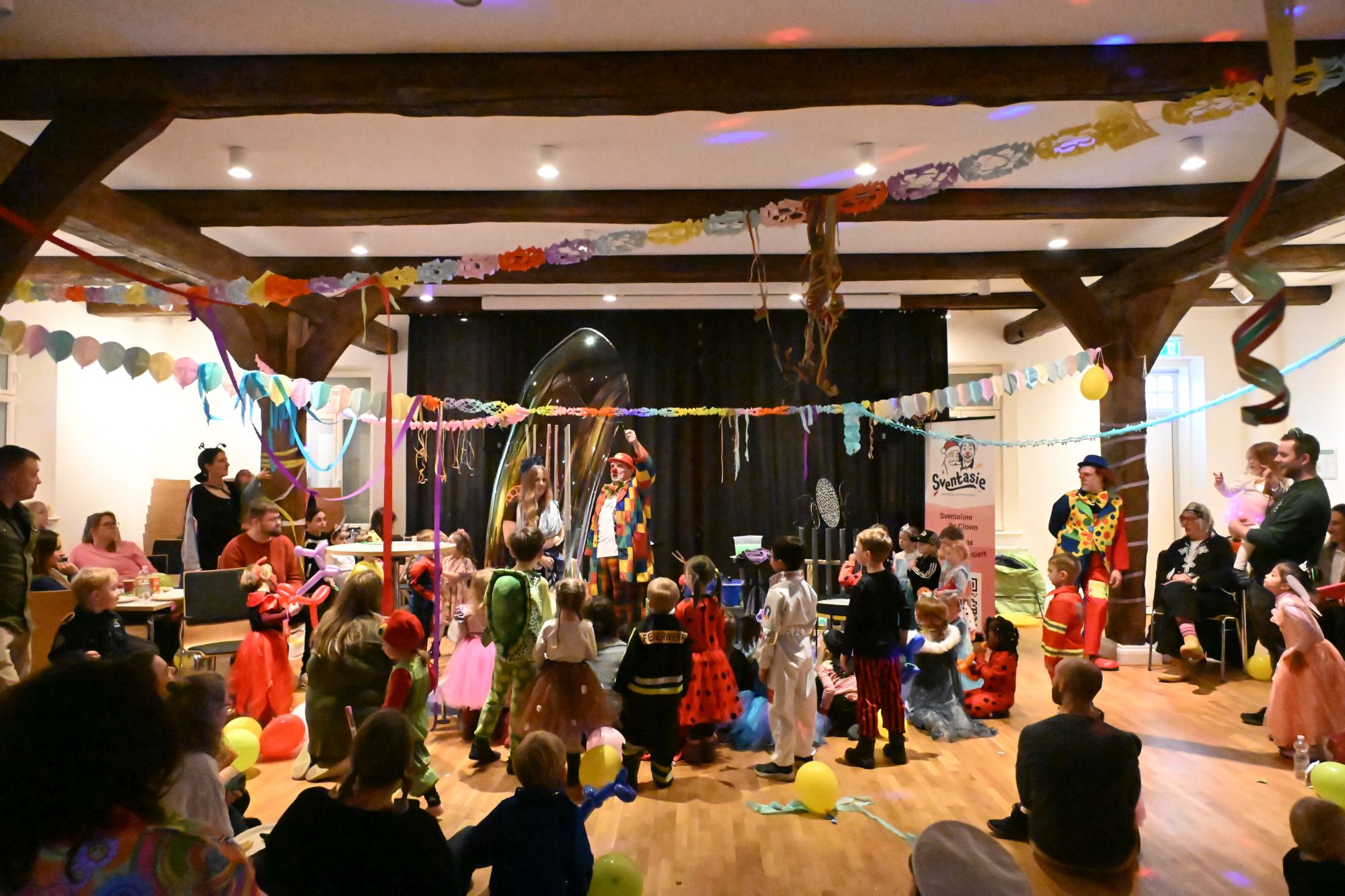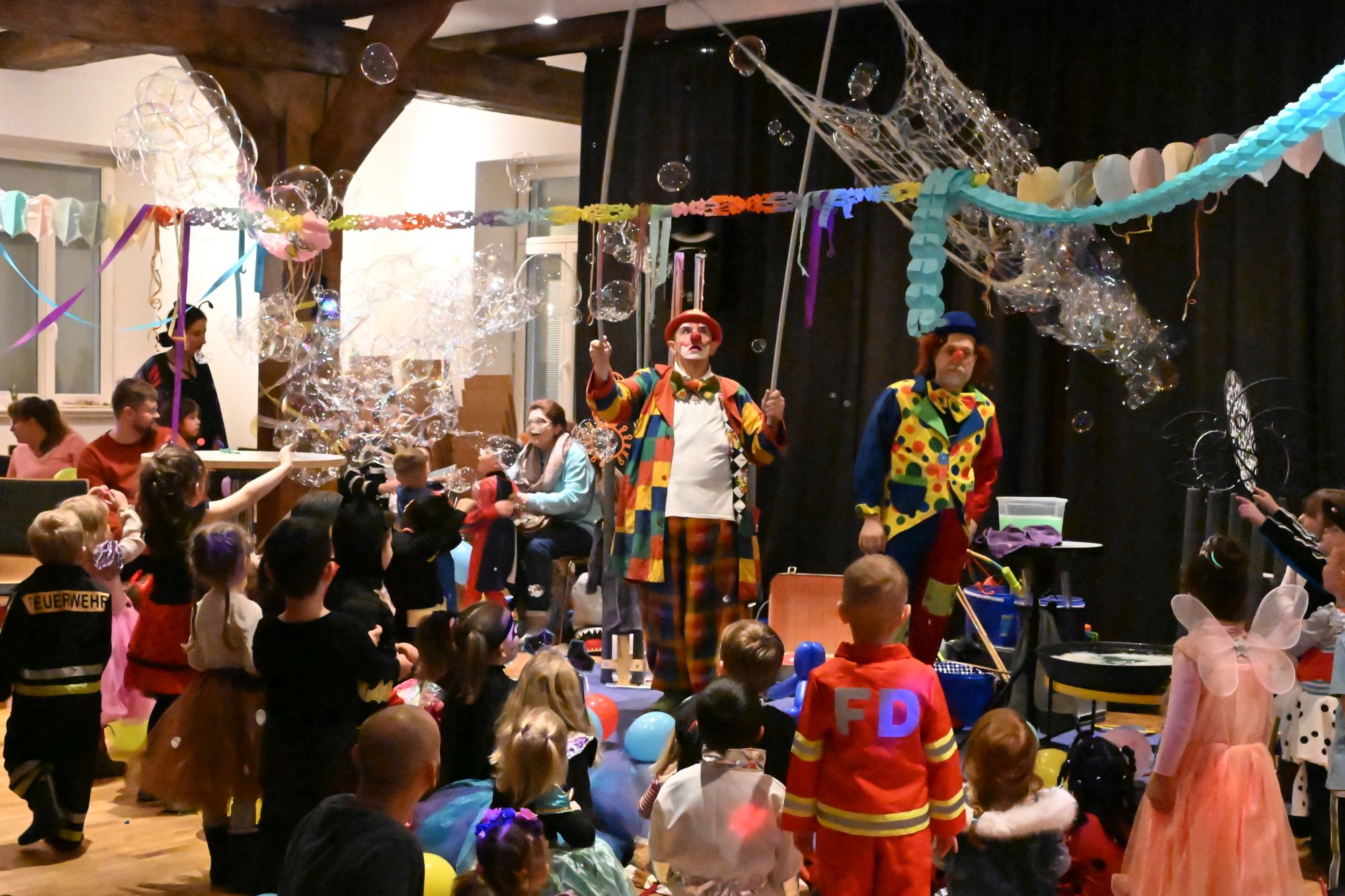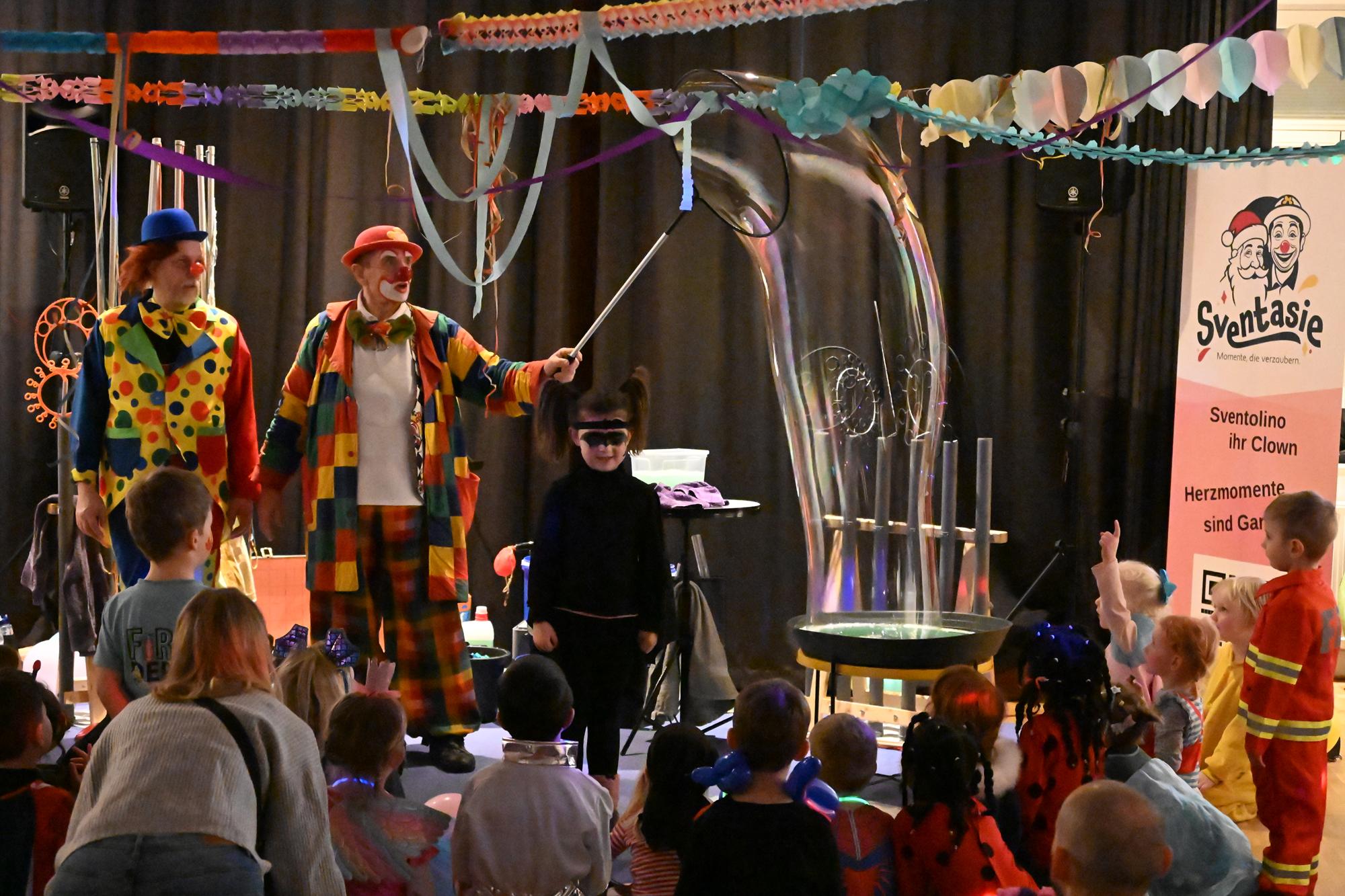 Viel Spaß hatten die Kinder und auch die Erwachsenen beim Kinderfasching im Lintler Krug. Die Seifenblasen-Show der Clowns sorgte für Begeisterung.